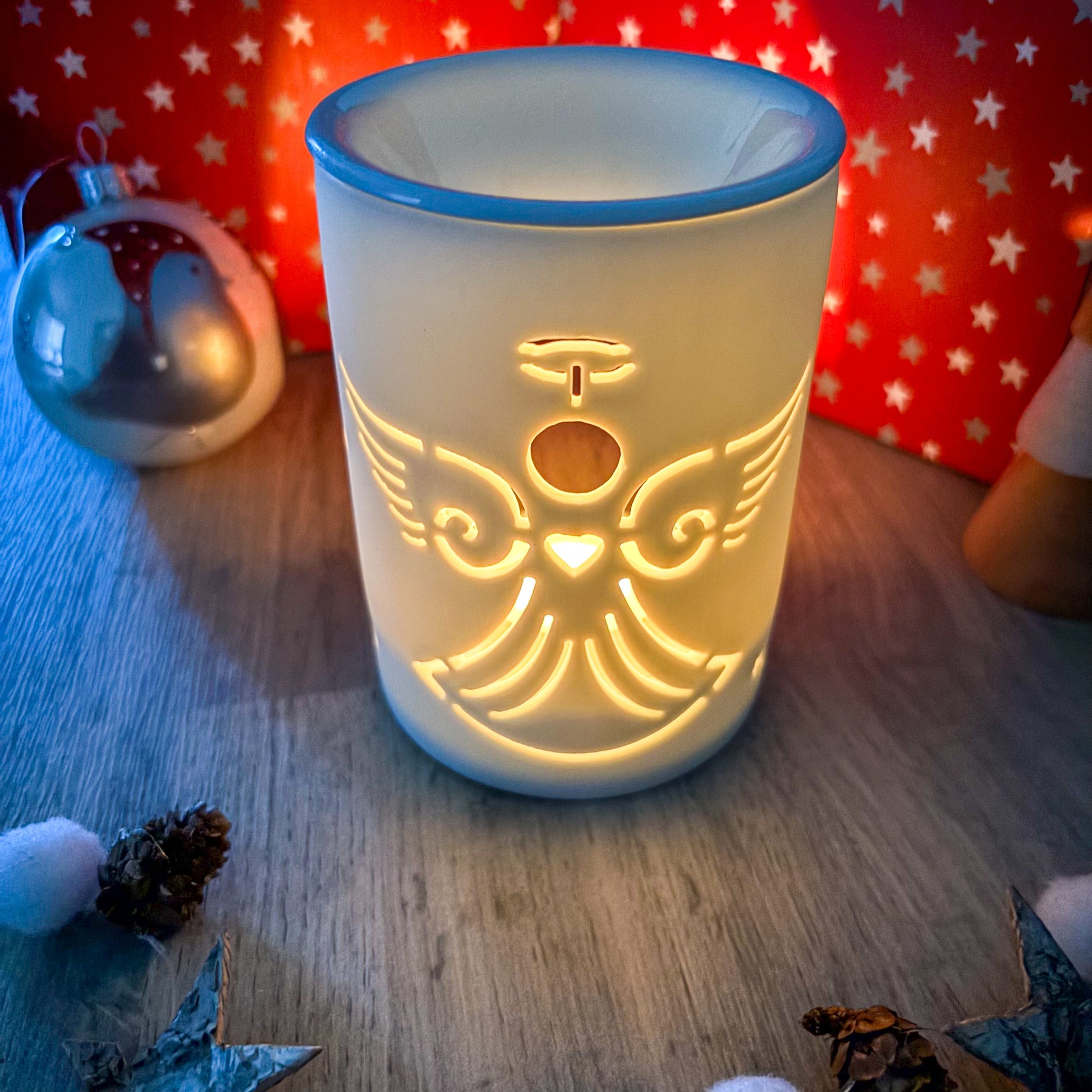 Brûle - parfum Ange: en céramique blanche ajourée, il laissera passer la douce lueur de la flamme pour des soirées cosy
