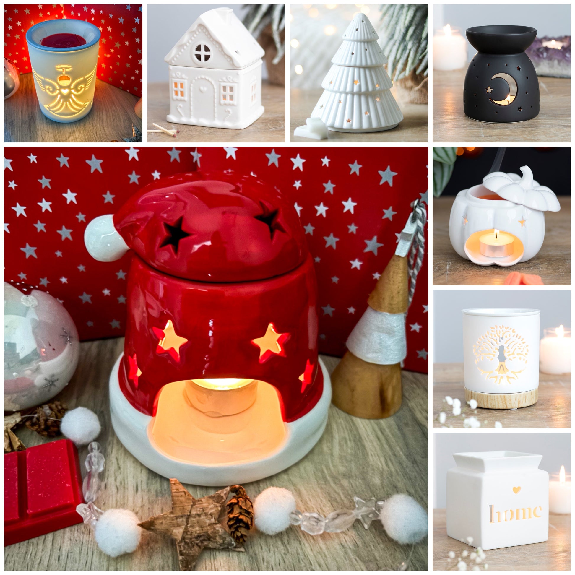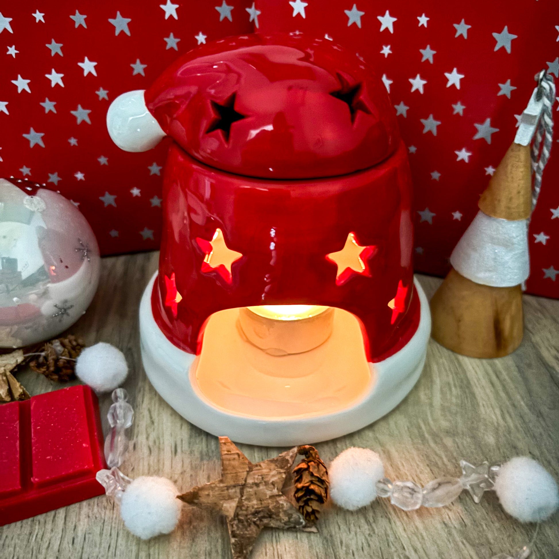 Brûle - parfum Bonnet de Santa:en céramique blanche et rouge, ajourée avec de magnifiques étoiles, ce brûle - parfum vous plongera directement dans l'ambiance de Noël