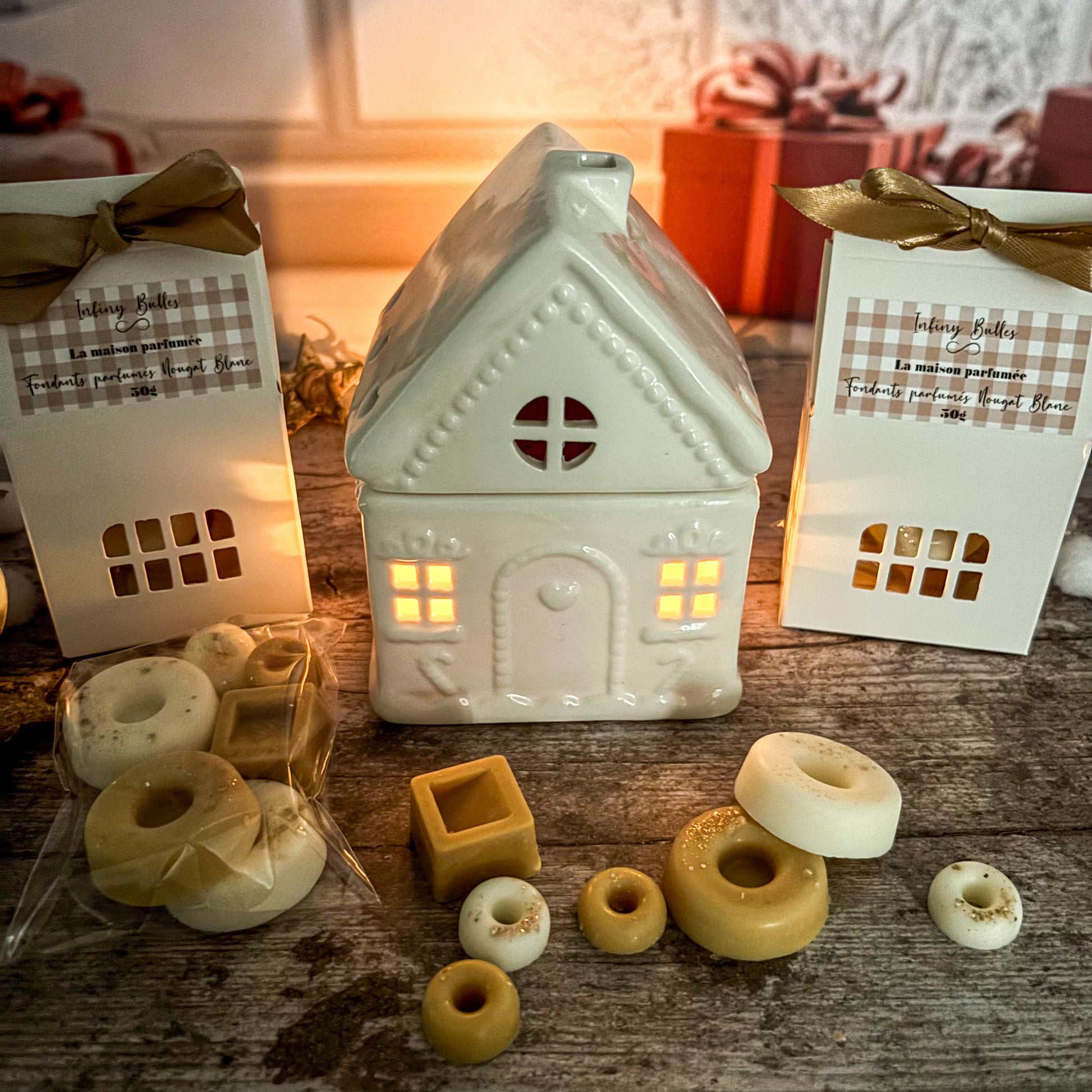 Brûle - parfum Maisonnette: en céramique blanche ajourée, cette maisonnette réchauffera vos soirées d'hiver