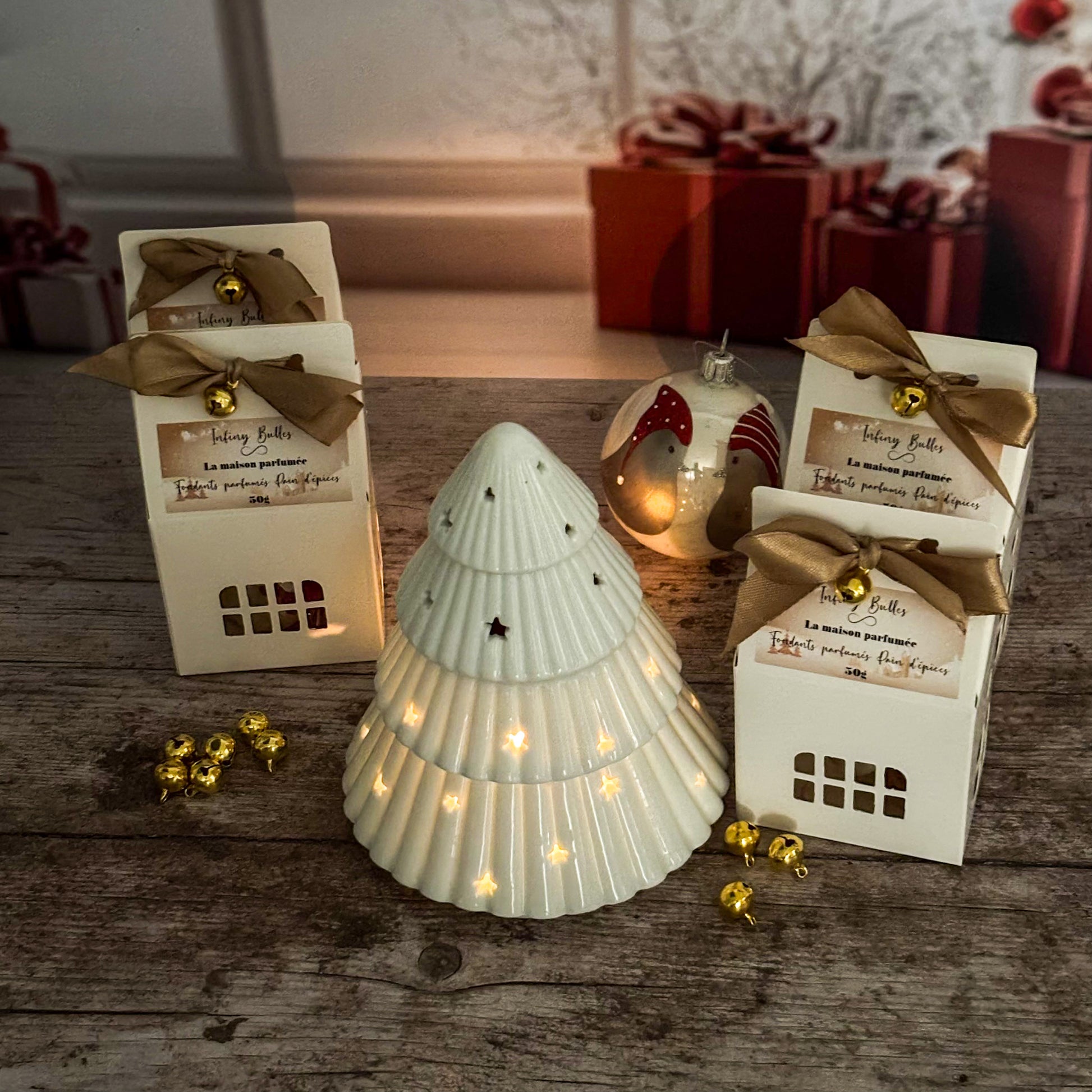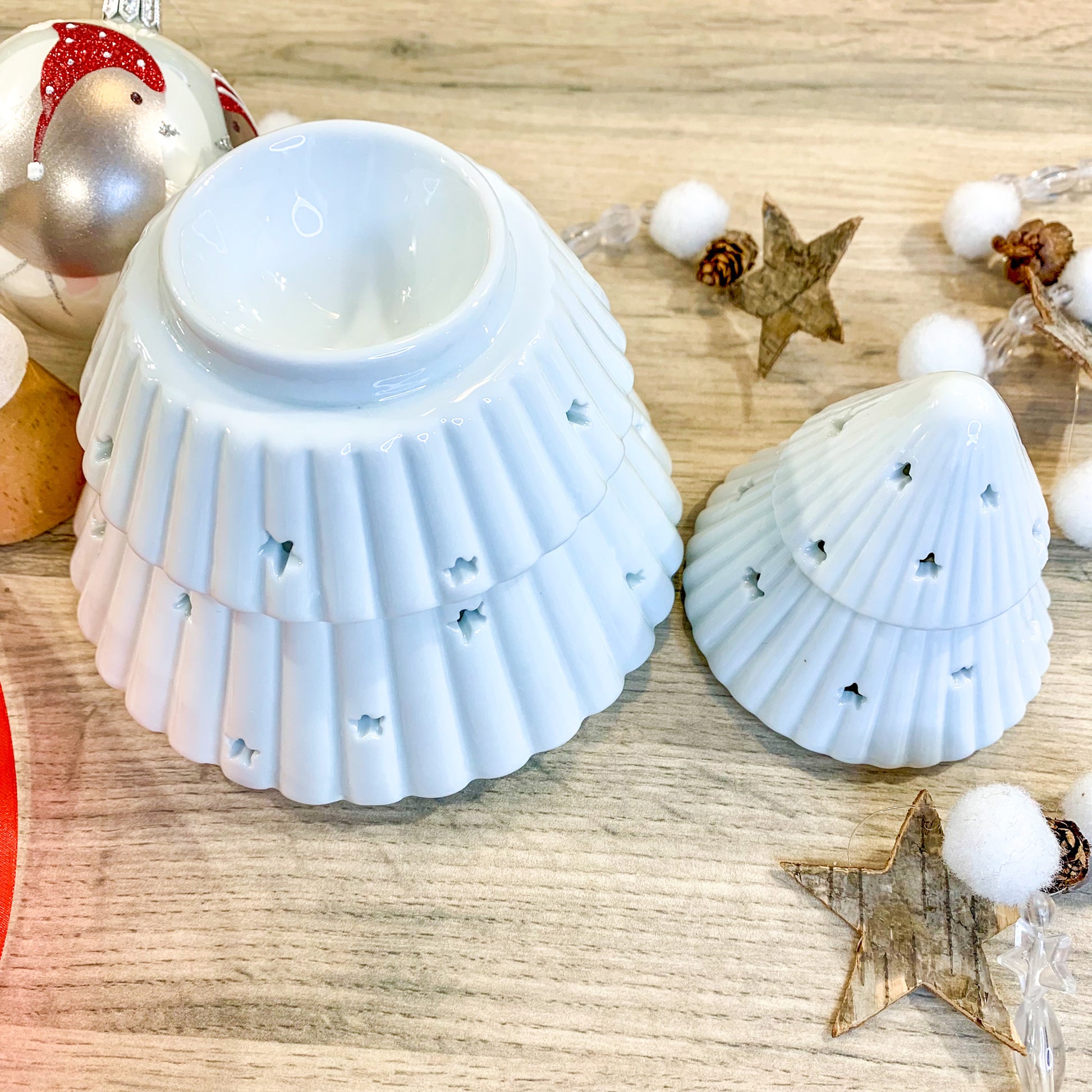 Brûle - parfum Sapin de Noêl: en céramique blanche ajourée, en forme de sapin de Noël, ce brûle - parfum est aussi magnifique un accessoire de décoration pour votre intérieur