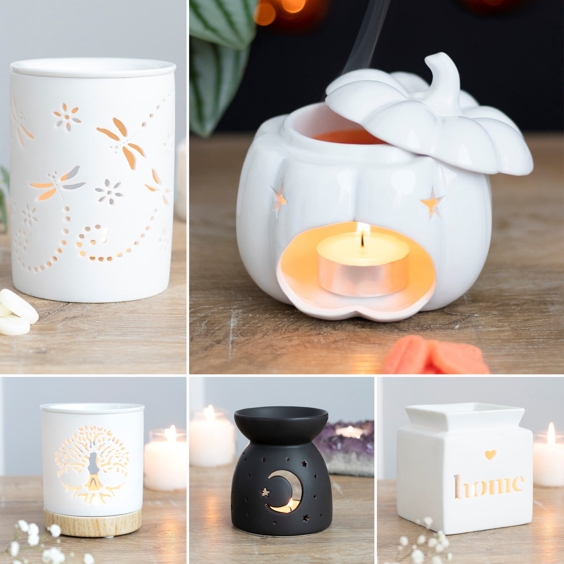 Brûle - parfum citrouille étoile: en céramique blanche avec des jolies étoiles ajourées qui laissent passer la lueur de la flamme, ce brûle - parfum est parfait pour créer une atmosphère cosy d'automne